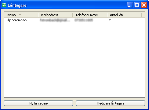 - Dubbelklicka på en rad för att redigera låntagaren.